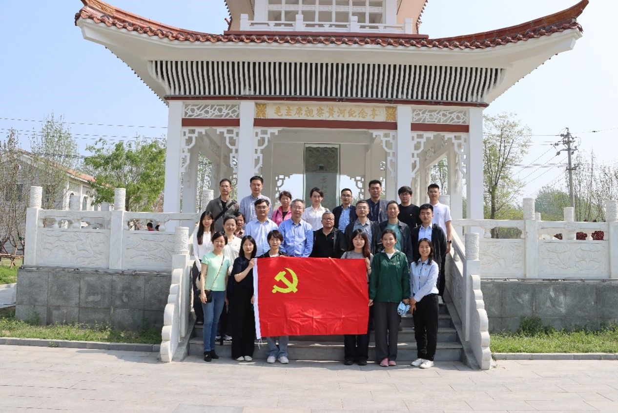 上午,党员同志们来到了九曲黄河的最后一道弯——兰考东坝头,黄河的波涛汹涌,仿佛在诉说着千年的沧桑与变迁。在参观过程中,党员同志们详细了解了“三害”的形成原因,感悟了中国共产党人接续奋斗治理黄河的奋斗历程。在毛主席视察黄河纪念亭前,党员同志们肃立致敬,缅怀伟大领袖。随后,大家前往东坝头乡张庄村,重走主席幸福路,感悟焦裕禄带领兰考人民治理 “风沙、盐碱、内涝”战天斗地的革命精神。在四面红旗纪念馆,党员同志们深刻领悟到焦裕禄书记树立的治理“三害”四面红旗:“韩村的精神、秦寨的决心、赵跺楼的干劲、双杨树的道路”,深刻领悟到焦裕禄精神的实质和内涵。