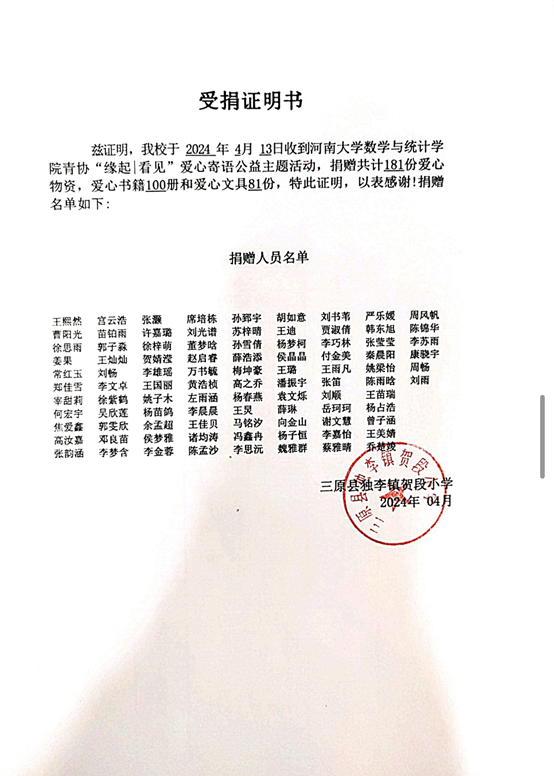 感谢河大学生们的关爱与捐助