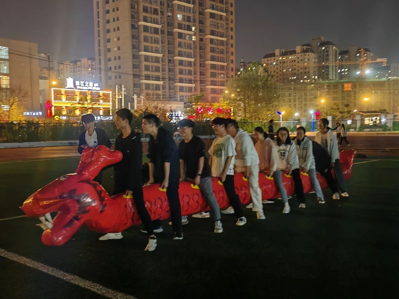 在旱地龙舟项目中,同学们在操场上模拟龙舟比赛。他们配合默契,“划桨”有力,以最快速度划过“赛道”,展现出了团结协作和力量感。