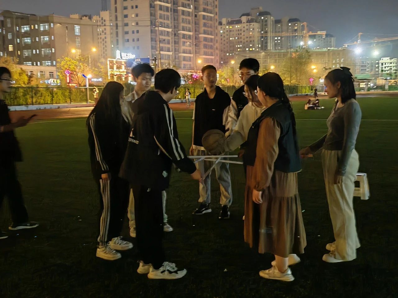 在共渡难关项目中,十位同学手挽着手,心连着心,尽管训练的过程中困难重重,但他们不畏艰难,勇敢面对任何挑战。