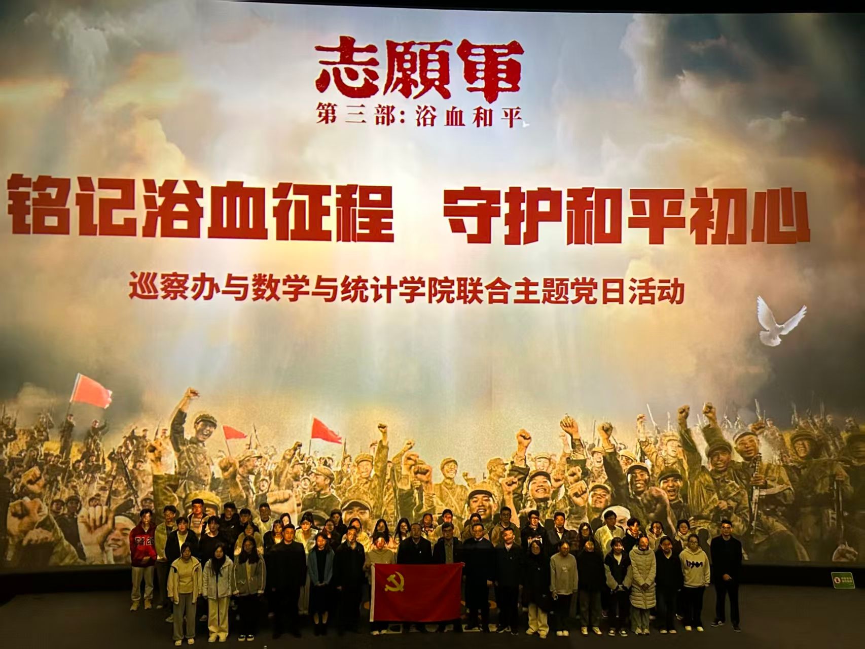 党委开展“铭记浴血征程,守护和平初心”红色观影主题党日活动。双方党员、入党积极分子及党外代表人士四百余人齐聚一堂,共同观看抗美援朝题材影片《志愿军:浴血和平》,在光影中回望铁血岁月,于银幕前砥砺初心使命。
