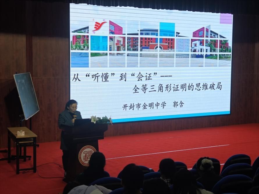 郭含老师作了题为《从“听懂”到“会道”——全等三角形证明的思维破局》的专题报告。报告直击学生学习的痛点,系统分析了学生在全等三角形证明中存在的“识图能力弱”、“判定依据模糊”、“思路断层”三大“堵点”问题,并提出了行之有效的“破局”策略。报告既有理论高度,又极具实操性,为参与师生提供了宝贵的教学借鉴。