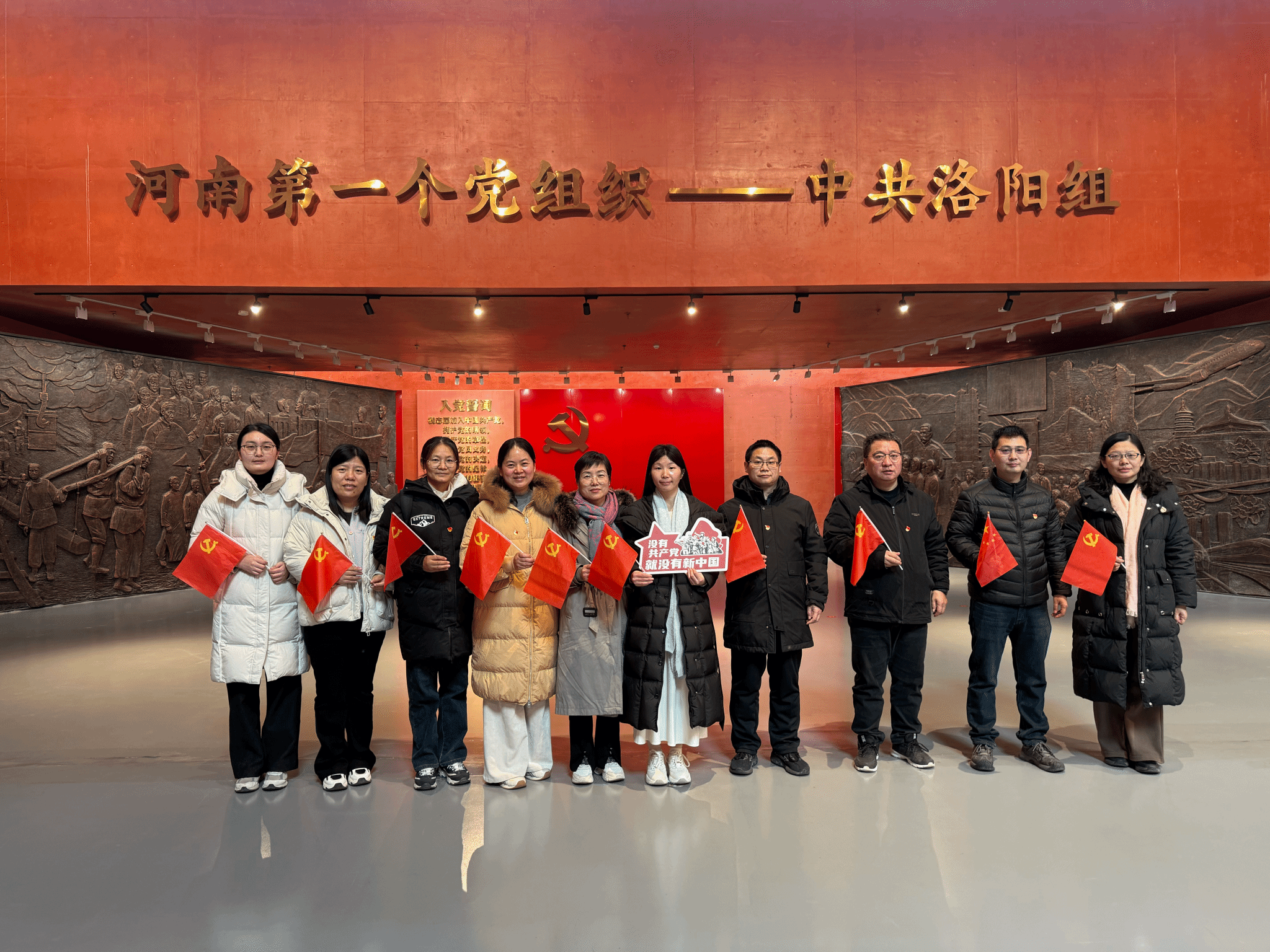 午餐后,党员队伍首先来到 “中共洛阳组”诞生地纪念馆。这里是河南省第一个党组织成立的地方。在庄严肃穆的展馆内,同志们通过聆听讲解、观看珍贵历史文物和图片资料,深刻回顾了中国共产党在中原大地播撒革命火种、领导工农运动的光辉起点,体悟了早期共产党人坚定的理想信念和艰辛的革命探索。