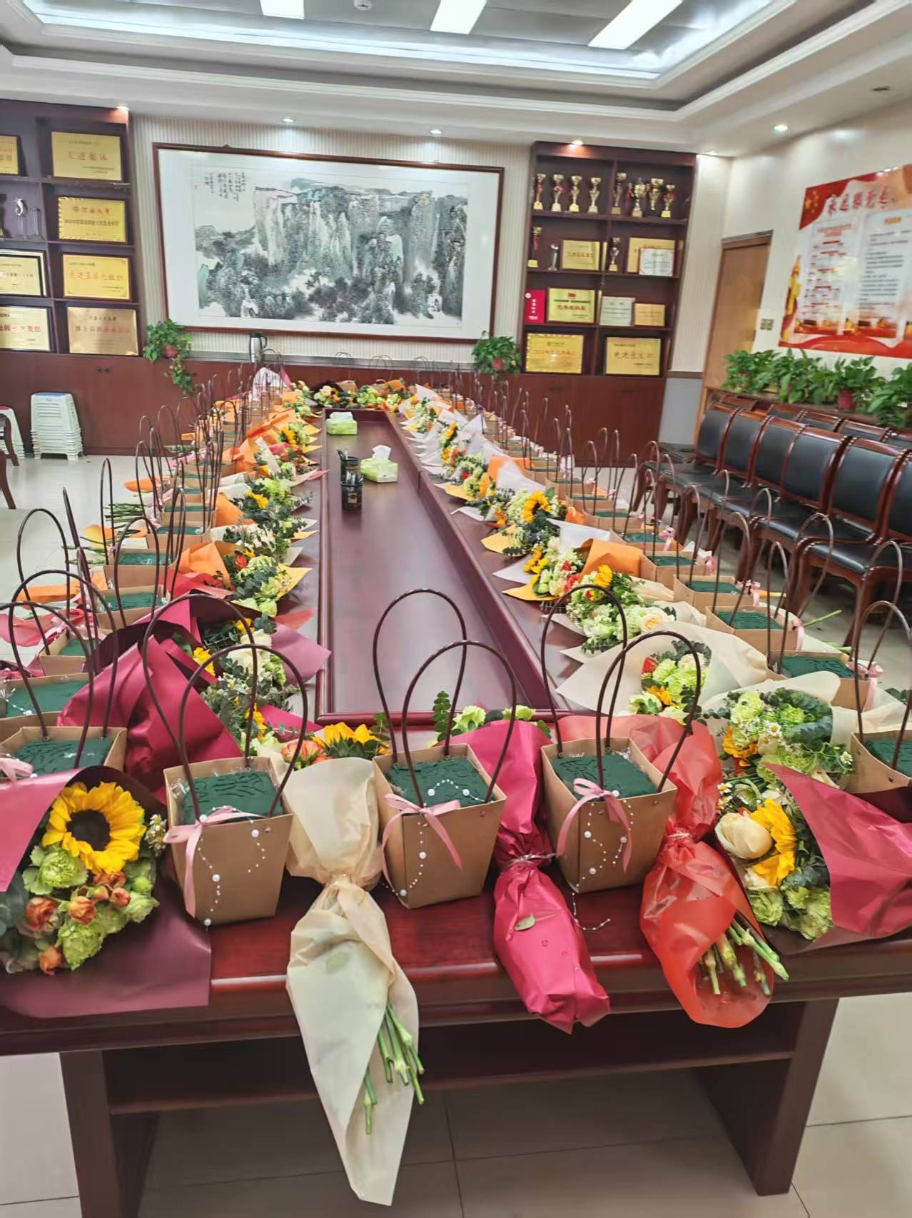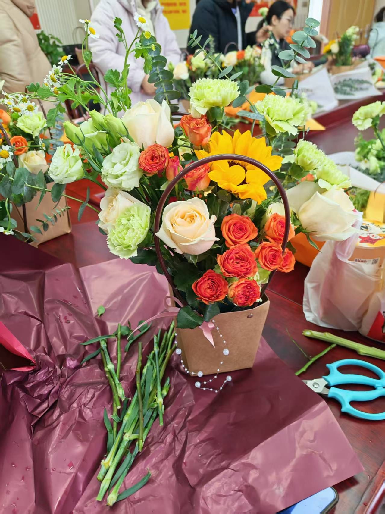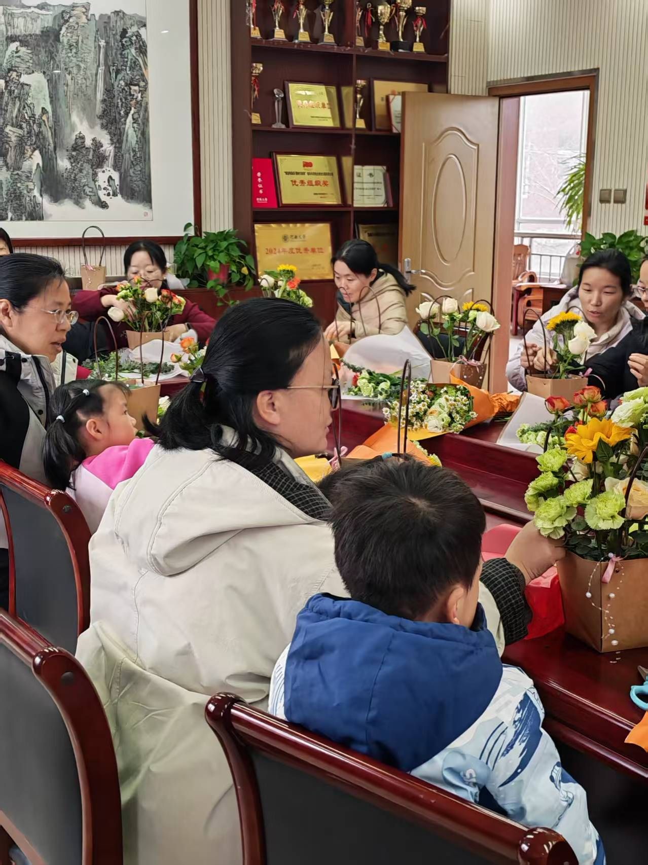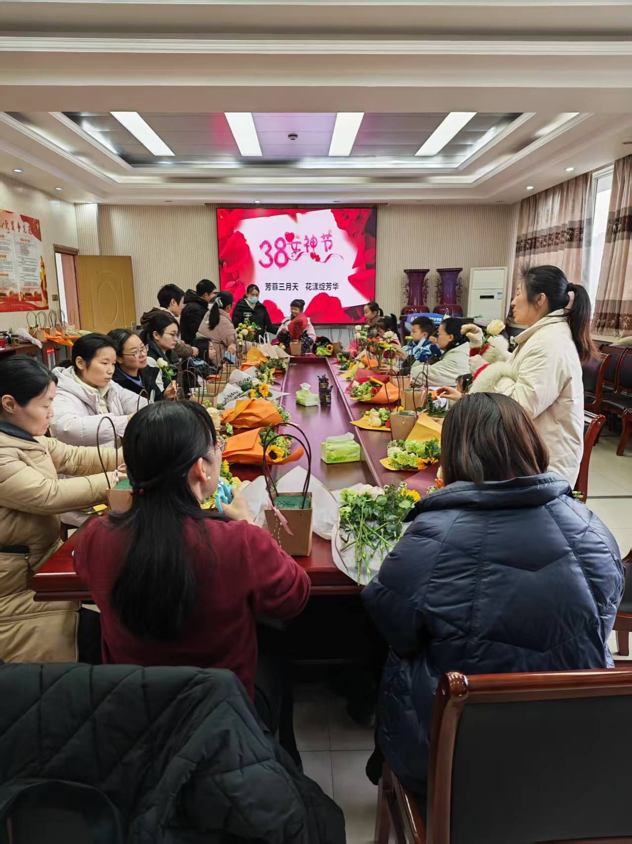 女教职工欢聚一堂,以花为媒、以艺怡情,在花香与笑语中共度温馨美好的节日时光。