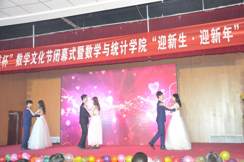 颁奖结束后,师生们以“我的大学,我的梦”为主题,分“立——启梦、守——追梦、得——圆梦”三个篇章举办了“迎新生·迎新年”晚会。晚会贴近时代需求,贴近大学生活,贴近专业特点,以数学学子入校以来的成长经历为背景,集中表达了数学人勇于肩负历史使命和责任,健康成长、爱国荣校的价值追求。整台晚会精彩纷呈、高潮迭起,在师生中引起了强烈的共鸣和反响。