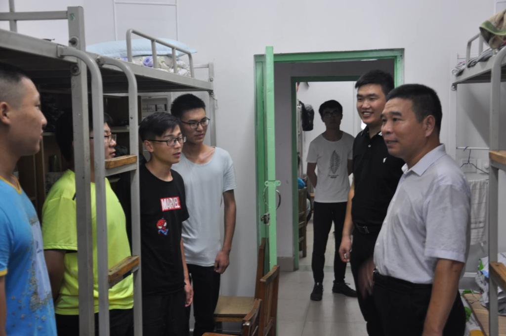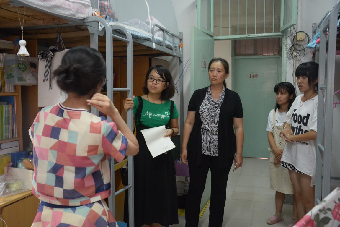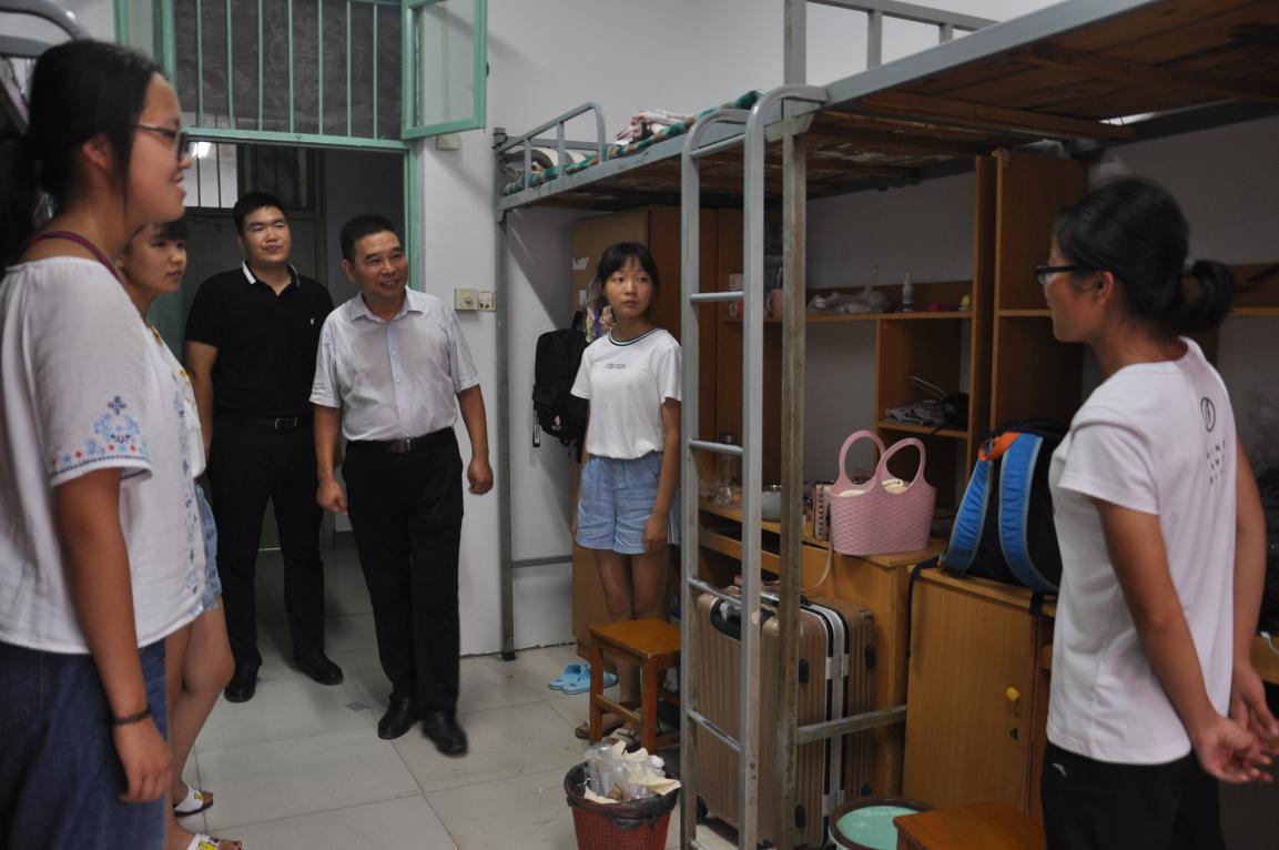 9月2日下午,中文色情 党委书记史富强、教学副院长王波带领中文色情 迎新工作小组走访本科新生宿舍进行慰问。
