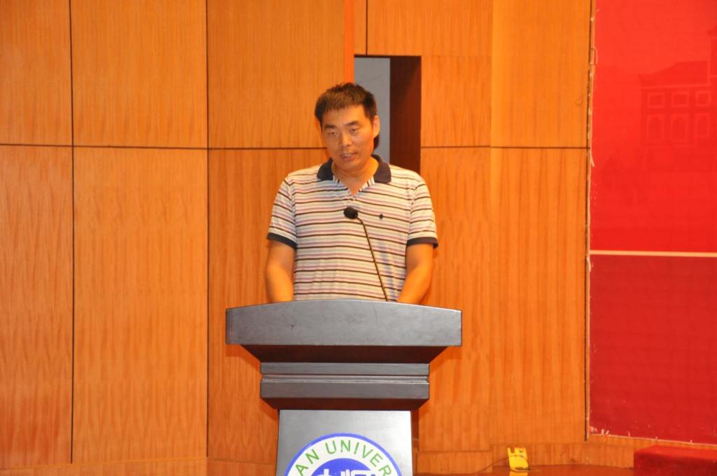 教师代表王涛分享了学习数学的技巧和要领,提醒初入大学的新生要有紧迫感,努力学习专业知识,肯钻研,能吃苦,做到“理解透,多训练”。
