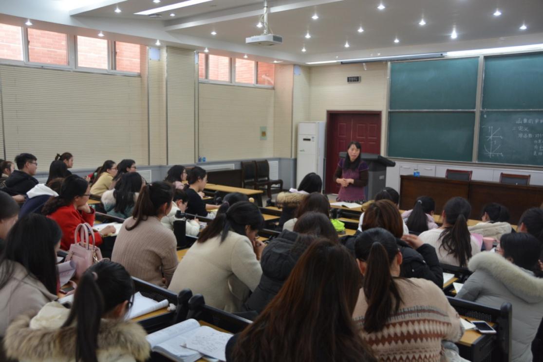 讲座上,张玉环细致准确地讲解了教师招聘对专业技能、简历的制作以及笔试面试技巧要求等问题。紧接着,讲座采取学生试讲, 同学讨论,老师给出指导性意见的形式进行。2015级本科生韩莹和侯宜吟分别试讲了《等比数列的前n项和》和《函数的单调性》的内容。