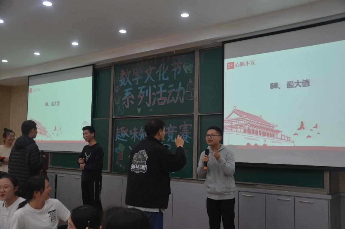 据悉,恰逢庆祝祖国七十周年华诞,此次竞赛以“礼赞新中国 筑梦新时代”为主题,作为数学文化节的重要内容之一,旨在展现数学的趣味和魅力,以赛促学,拓宽同学们的知识面,提高同学们的数学学习兴趣,丰富同学们的大学生活,同时也让同学们感受中华人民共和国成立70周年以来的蓬勃发展历程,激励同学们奋发向上,积极参与祖国建设大业。