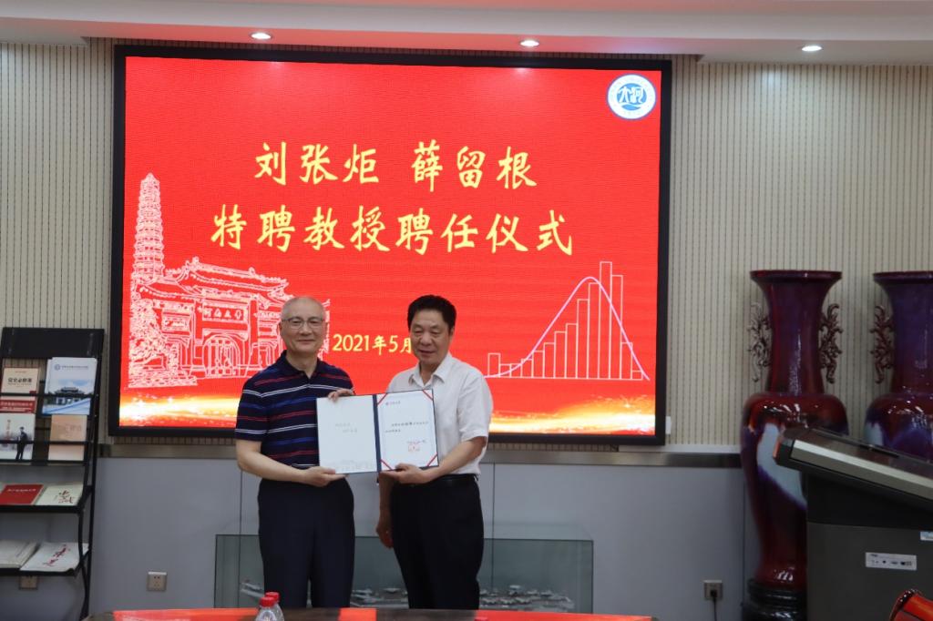 在院二楼会议室为北京大学刘张炬教授、北京工业大学薛留根教授受聘我校特聘教授举行聘任仪式。中文色情