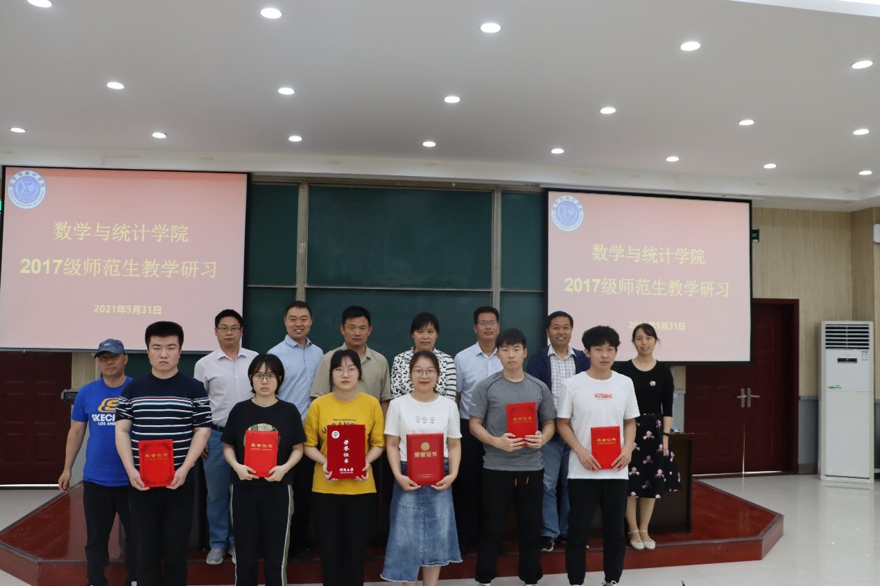 附属中学黄云龙、开封市第二十五中学陈君、开封市金明中学曹鹏龙和开封市集英中学焦红辉应邀参加,校内指导老师代表程永胜、张丰盘、尹彦彬、张玉环和2017级数学与应用数学专业全体同学参加了活动,活动由张玉环主持。