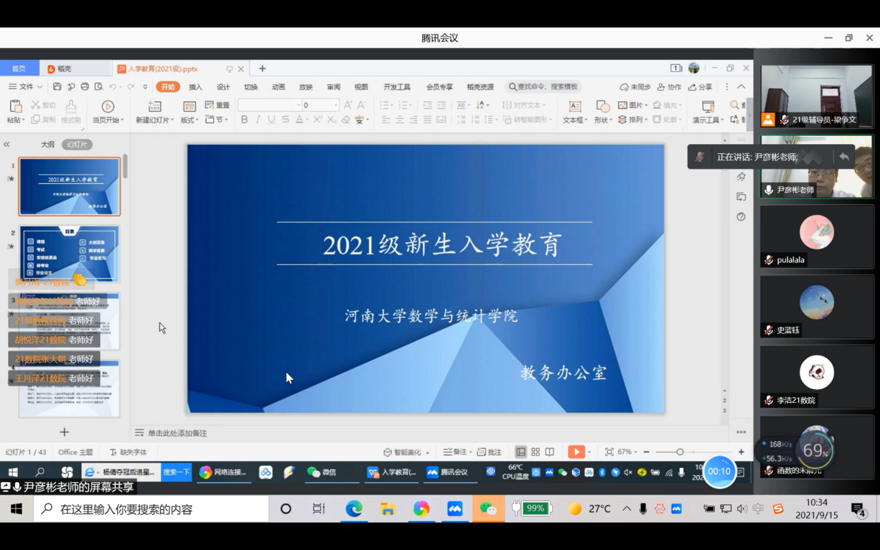 于9月13日至17日对2021级本科生开展线上入学教育。