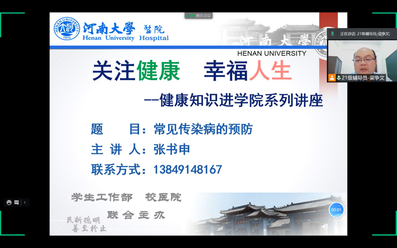 还邀请到校医院副院长张书申、心理健康教育与咨询中心张典、开封市公安局电信诈骗犯罪侦查支队三大队大队长刘畅分别为同学们开展常见传染病的预防教育、心理健康教育和电信诈骗警示教育,帮助同学们正确预防新冠病毒和常见传染病,引导他们以良好的心态面对新的学习和生活环境,降低他们被电信诈骗蒙蔽的概率,为新生做好各方面的安全健康教育。