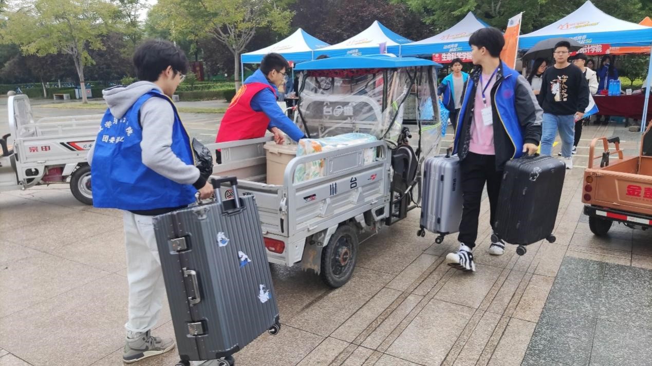 一层秋雨一层凉,学长学姐们的热情却似火般温暖。校门外,迎新团队翘首以盼,时刻准备着迎接新生进入校园。校门内,志愿者们兵分四路,分别负责引导新生至迎新站点报道、协助办理入学手续并提醒相关注意事项、将行李运至宿舍楼、帮助新生把行李送达宿舍。大家各司其职,热情周到地接待了“小21们”,迎新工作有条不紊地进行。