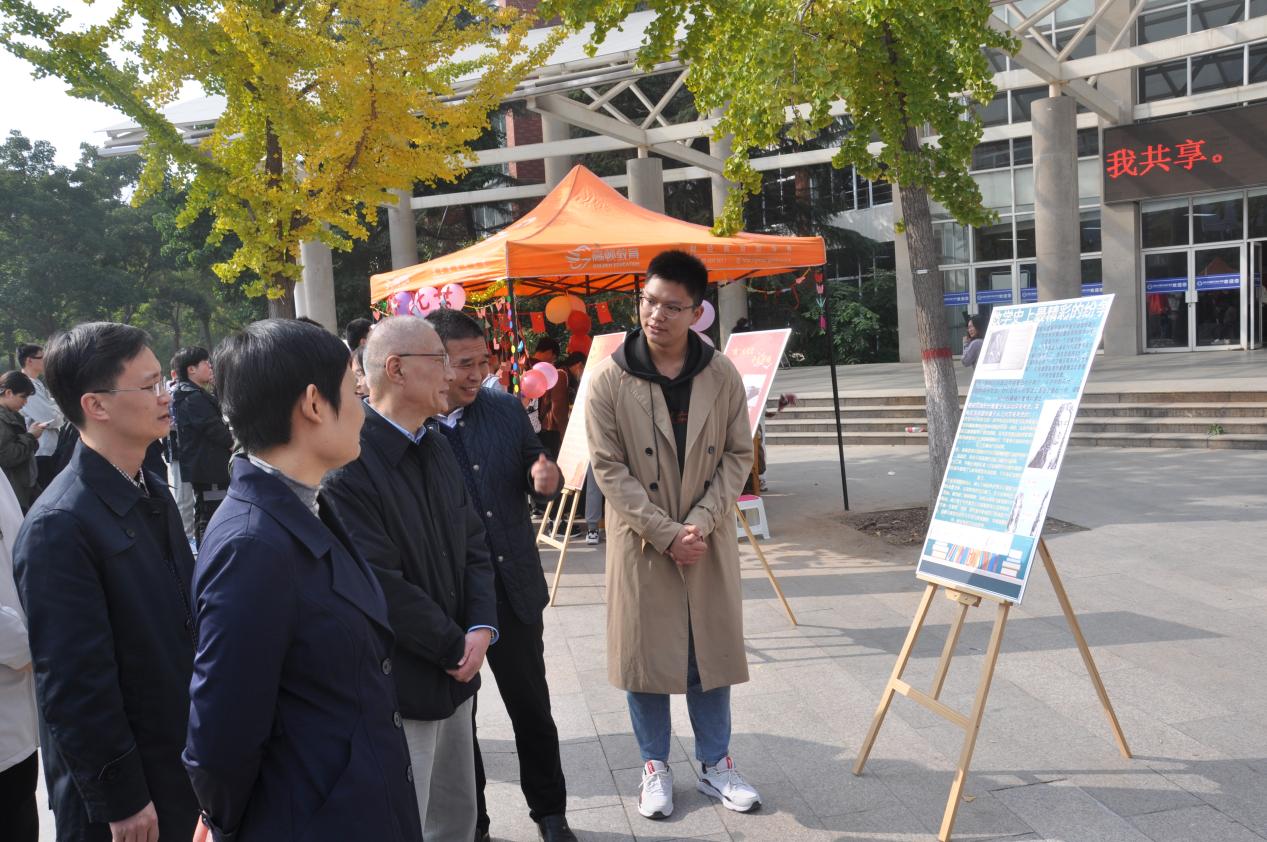 学生会成员的引导下,参观了“数”说党史的主题展板,通过一组组数据回顾党的百年风雨历程和峥嵘岁月。