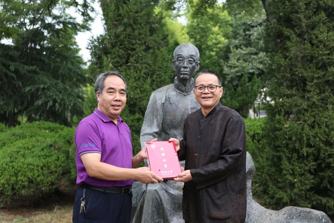 校庆一号公告书法册页,王守中代表档案馆接受捐赠并向捐赠人颁发收藏证书。