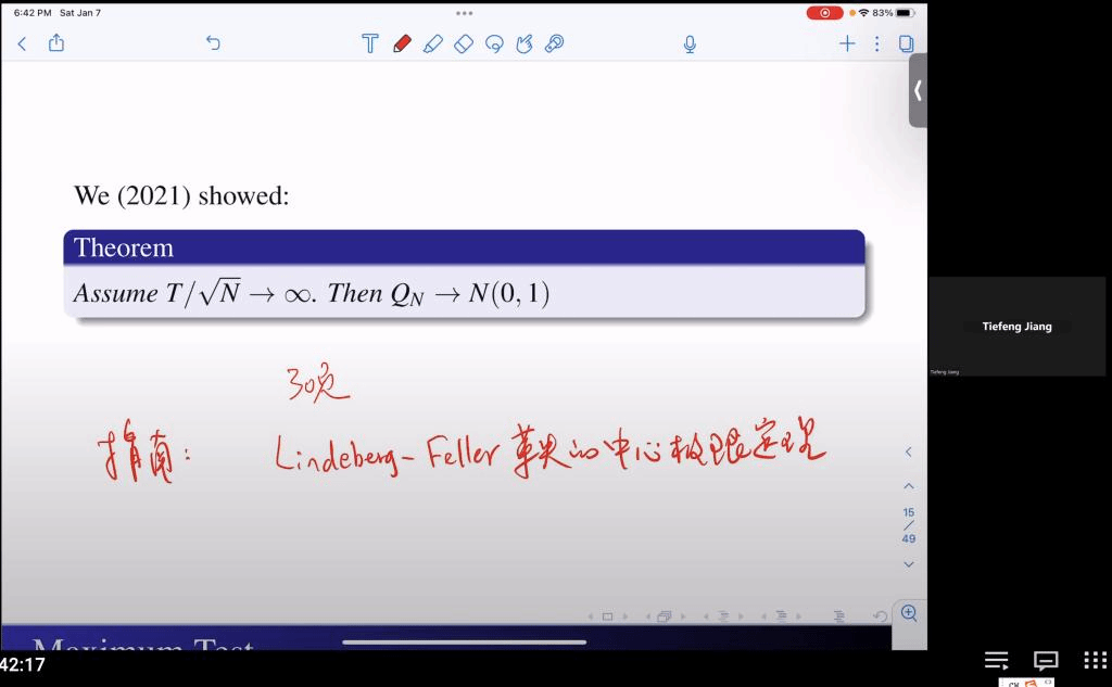 姜铁锋教授讲授《Max-sum tests for cross-sectional independence of high-dimensional panel data》