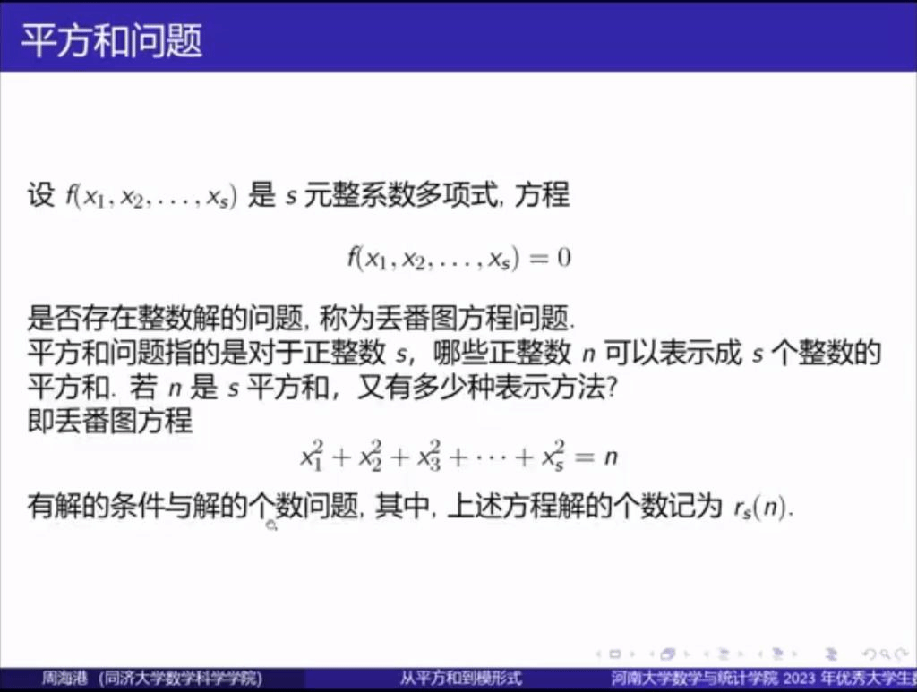 周海港教授讲授《从平方和到模形式》