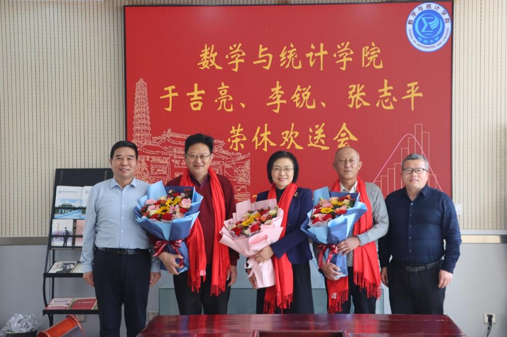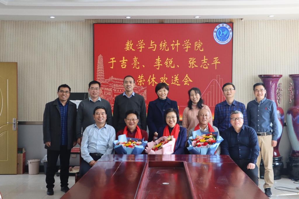 在二楼会议室举行教师荣休欢送会,欢送于吉亮老师、李锐老师和张志平老师光荣退休。院领导班子全体成员、数学教育系系主任和支部书记、院办主任参加欢送会。欢送会由院党委书记史富强主持。
