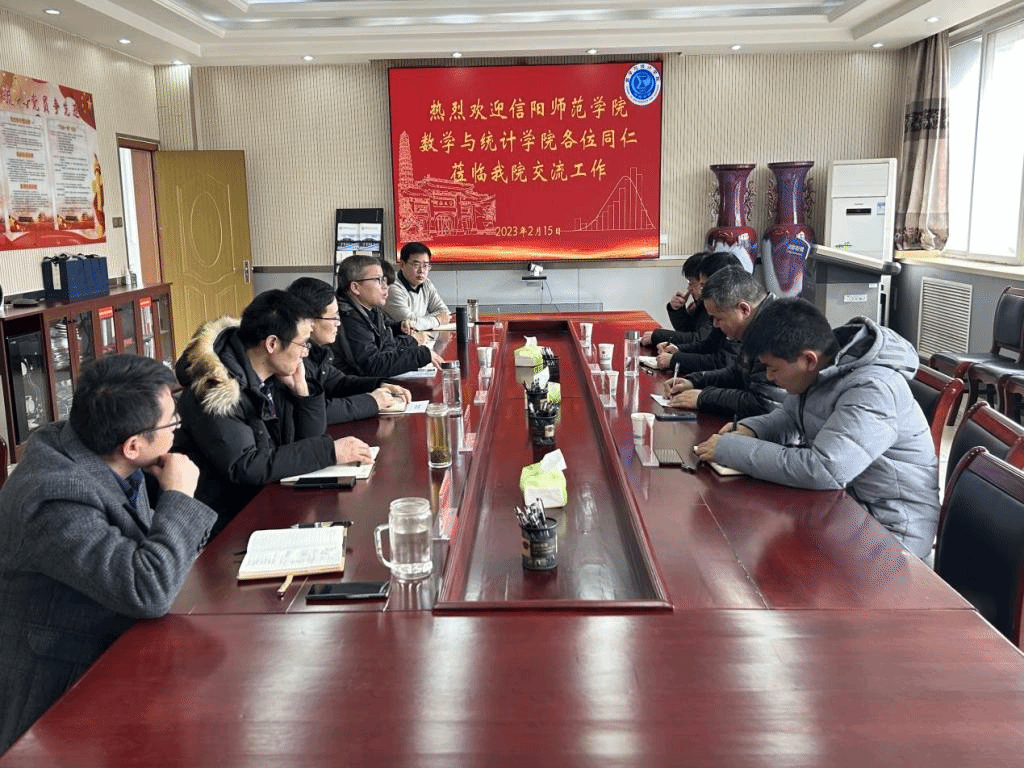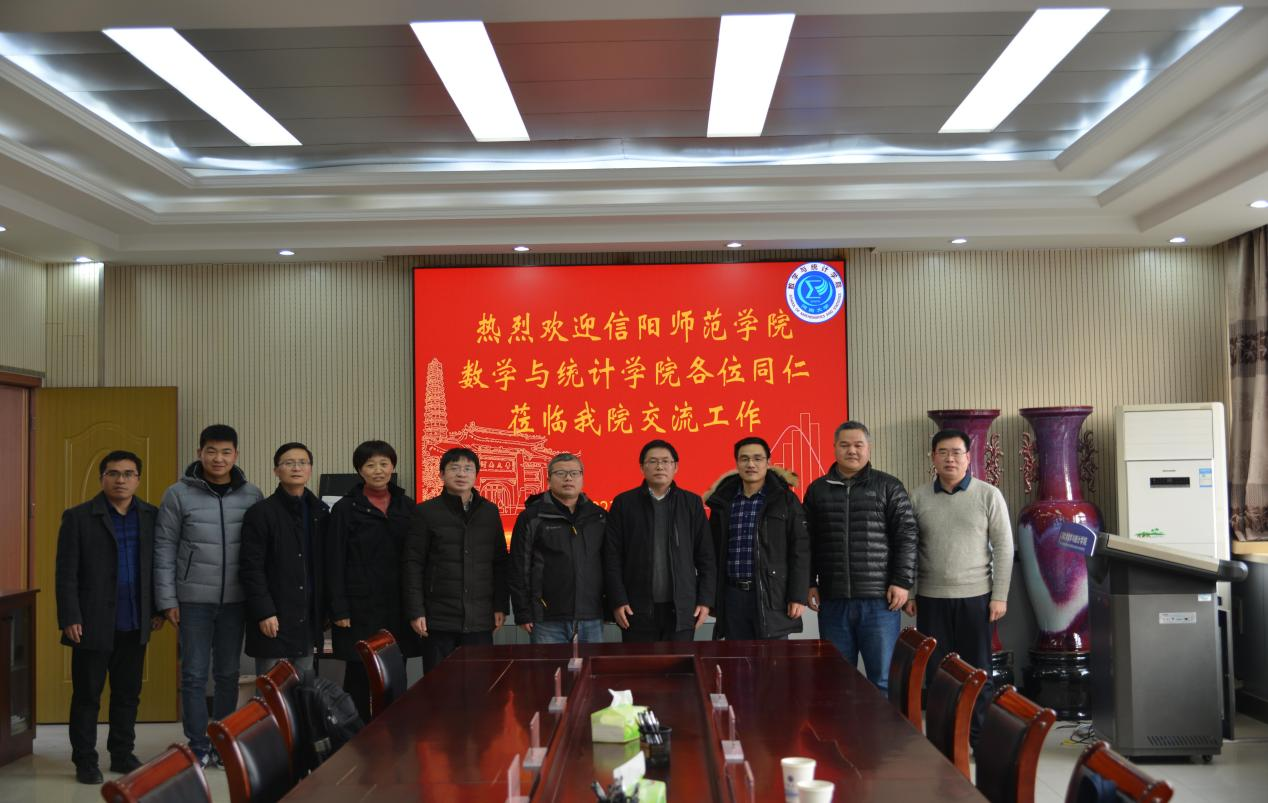 院长蔡礼明,副院长韩英波、李连兵,数学系主任郑重一行4人来我院进行交流座谈。院长韩小森,党委副书记赵红磊,副院长王波、杨一平、解俊山、唐恒才等参加了座谈会。座谈会由韩小森主持。