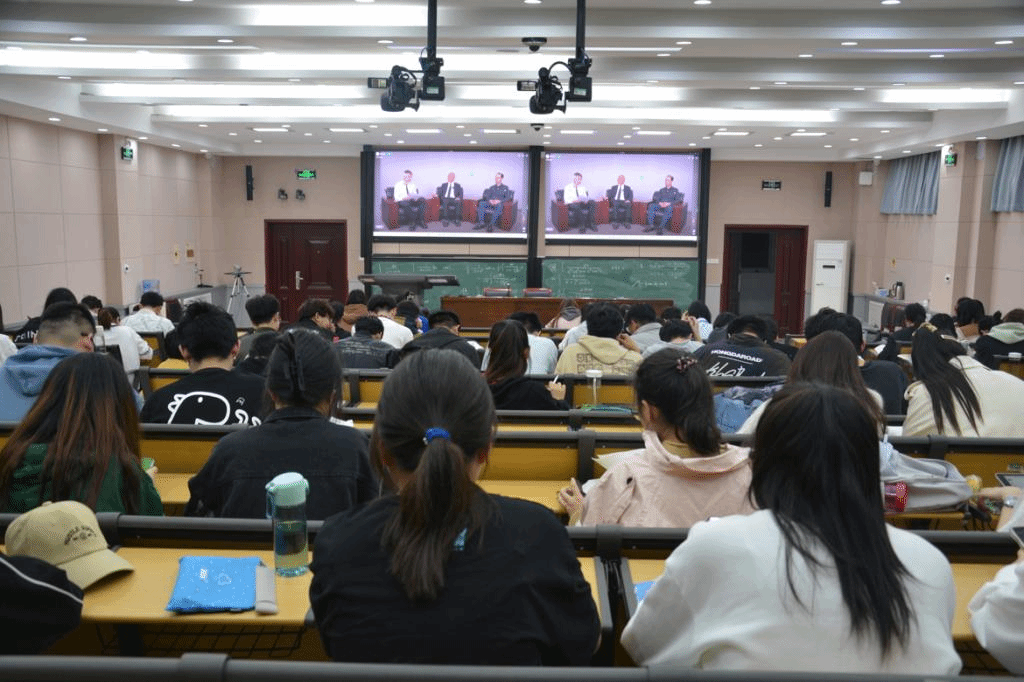 各年级学生代表共100余人在南阶教室观看“对话菲尔兹奖得主-和大师一起庆祝国际数学日”直播,著名数论学家 Ivan Fesenko 教授与国际著名数学家、菲尔兹奖得主丘成桐院士、 Caucher Birkar 教授对话,共同分享探讨了数学学习方法技巧、科学研究品质及人才培养理念等方面的内容。三位知名数学家通过网络直播的方式为大家带来数学有关的学术盛宴,与喜欢数学、热爱数学的学生在“云端”同庆“国际数学日”。