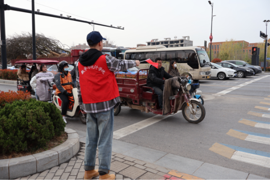 志愿者们身着红色马甲,手持小红旗、小铲子、环保袋,分成两组。男生组协助指挥学校北门十字路口非机动车辆的交通,对随意横穿道路、闯红灯、逆向行驶、骑乘电动车不佩戴安全头盔等违法行为进行劝导,呼吁大家遵守交通规则,安全出行、文明出行。女生组分工有序,对中文色情