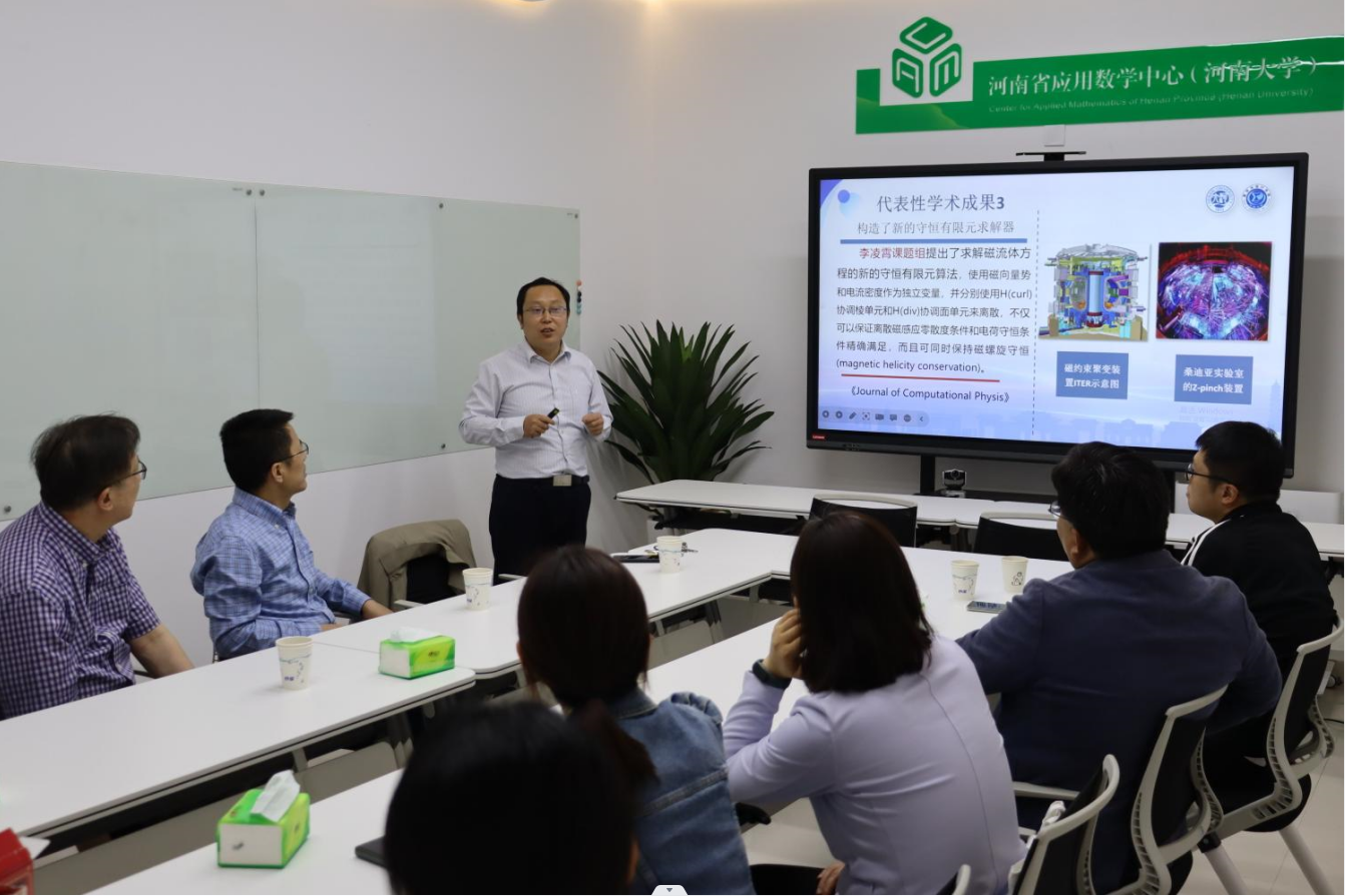 )。在听取了中心执行主任肖运海教授对中心建设情况的汇报后,各位专家为中心的建设与发展谏言献策,对中心建设发展规划进行了广泛交流与讨论。期间,南方科技大学张进副教授作了关于深圳国家应用数学中心2021-2022年的建设情况的报告,也为河南省应用数学中心的建设提供了很好的学习借鉴。